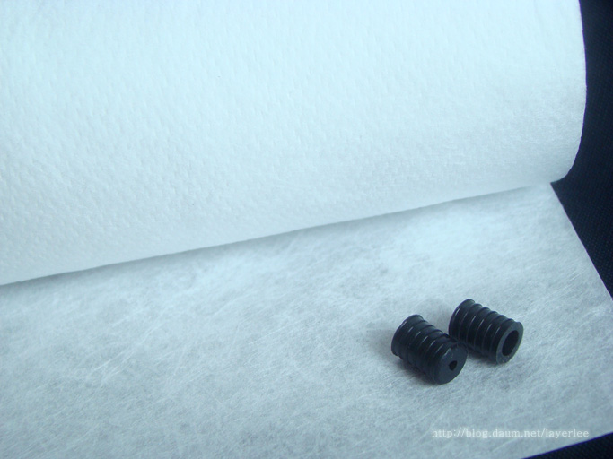 마스크끈의 경우는 그냥 보기엔 4골 고무밴드와 차이점을 잘 모르겠는데 설명으로는 고무가 들어가지 않아 알러지가 생기지 않는 제품이라고 합니다. 폴리이소프렌(고무사) 65% 폴리에스터 35% 구성입니다.