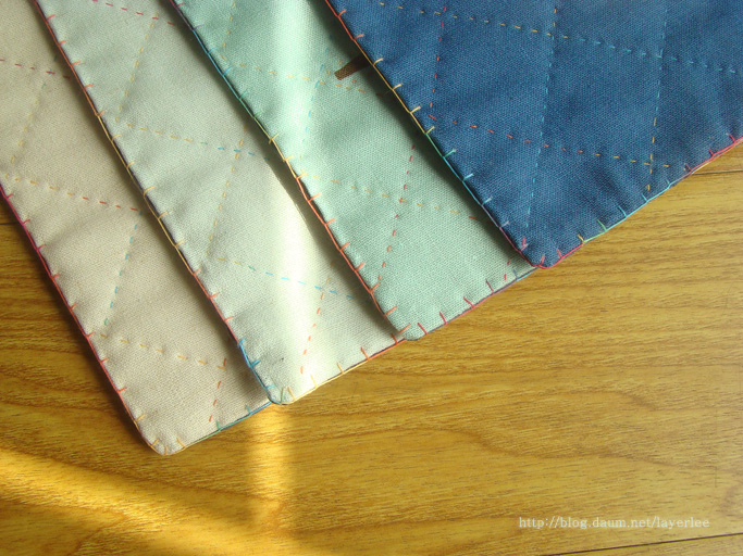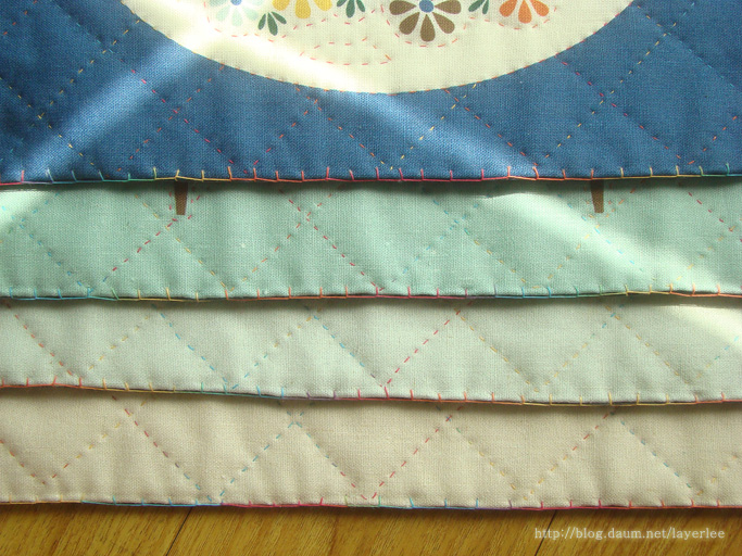퀼팅은 60수 3합 무지개사를, 테두리는 30수 3합 무지개사를 사용했어요.