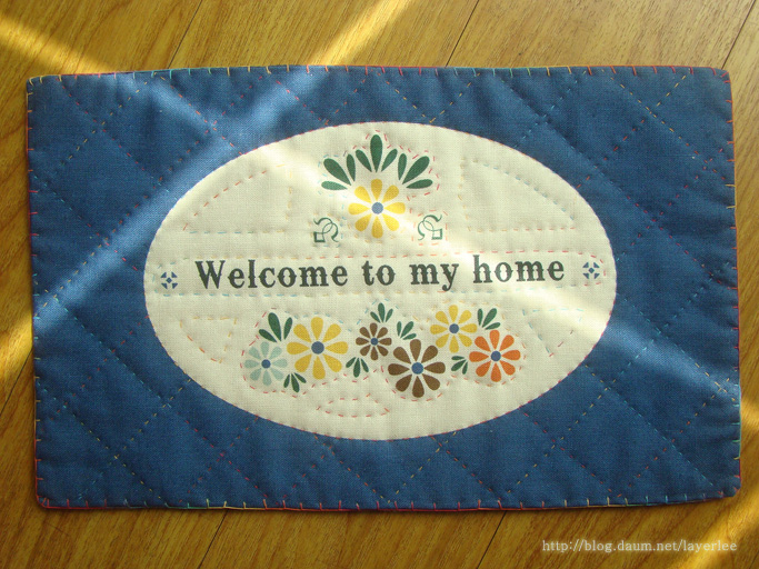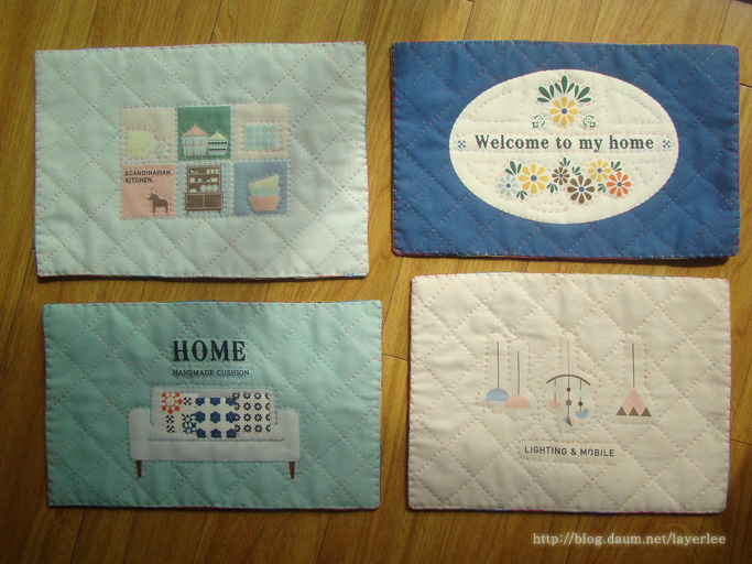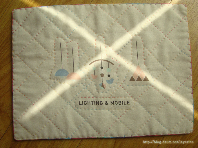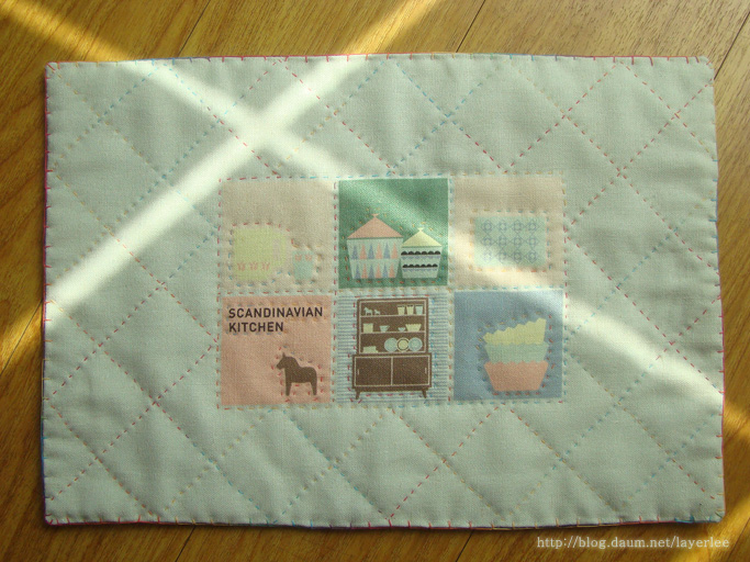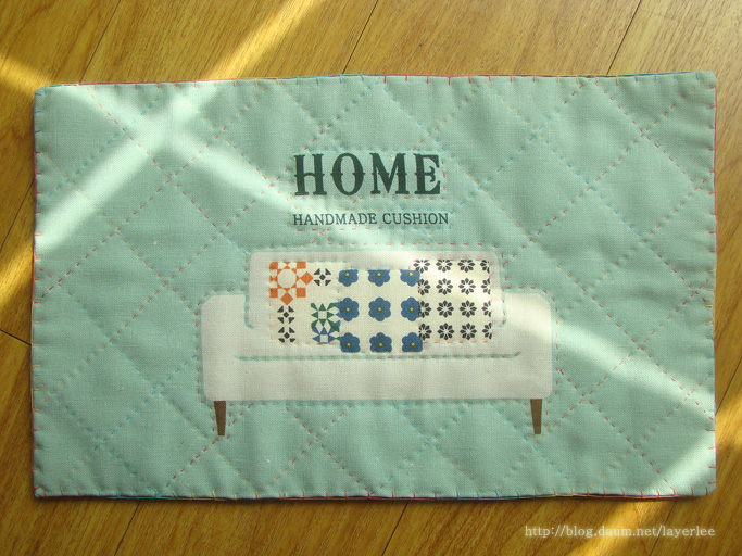 제일 처음 퀼팅 작업을 한 것이에요. 스칸디나비안 리빙룸 커트지를 사용했습니다.