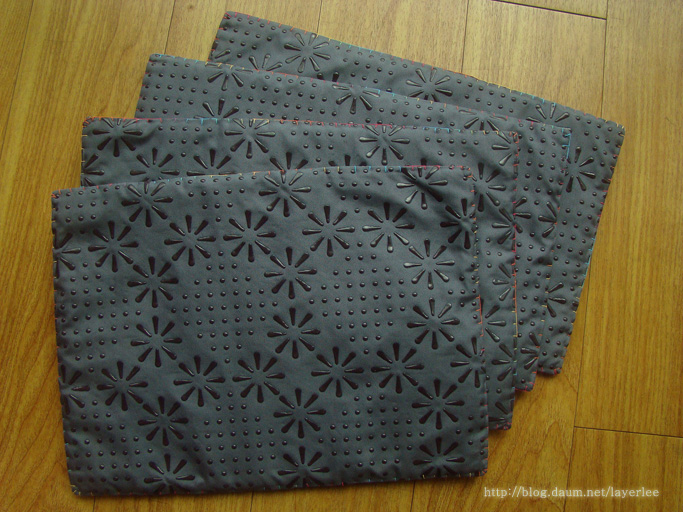 이전의 마우스 팔꿈치 패드와 동일한 퀼팅 패드를 4장 만들었어요. (이전 패드 포스팅은 '여기'입니다.)