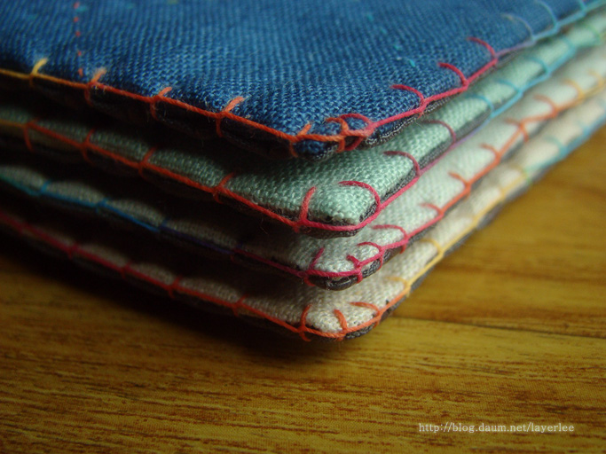 귀퉁이 부분입니다. 블링킷 스티치를 여러 번 해보니 역시 테두리 끝에 모아서 더 바느질하는 게 깔끔해요.