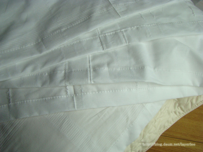 베갯잇 원단은 이전 베개커버와 같은 30수 면원단을 사용했지만 커버는 기성제품으로 바꾸었어요.