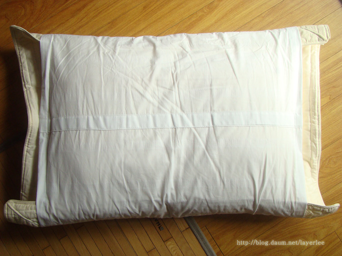 쌈솔을 해준 연결 부위가 보이는 뒷면입니다. 베개커버의 날개가 접혀 들어갑니다.
