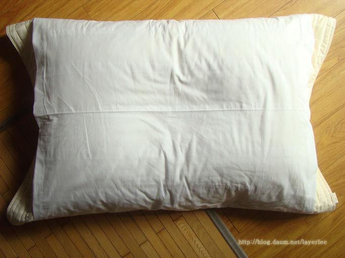베갯잇을 씌운 베개만의 전체샷입니다. 앞면이에요.