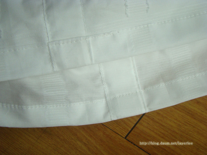 연결 부위는 쌈솔을 했어요. 양끝 시접은 넓게 두 번 접어 박기를 했습니다.