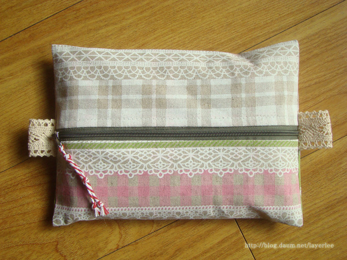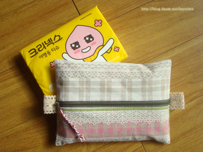 납작 지퍼 파우치 형태의 휴대용 티슈 케이스를 만들었어요.