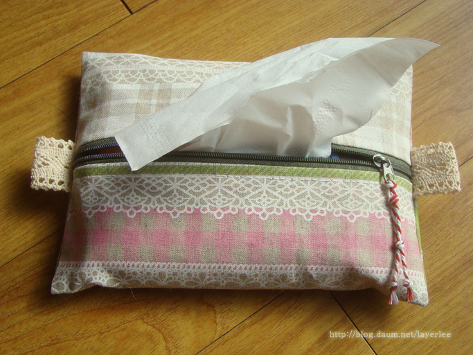 티슈가 말랑하기 때문에 솜이나 기타 쿠션감은 필요하지 않아 안감 없이 한 장으로 제작했어요.