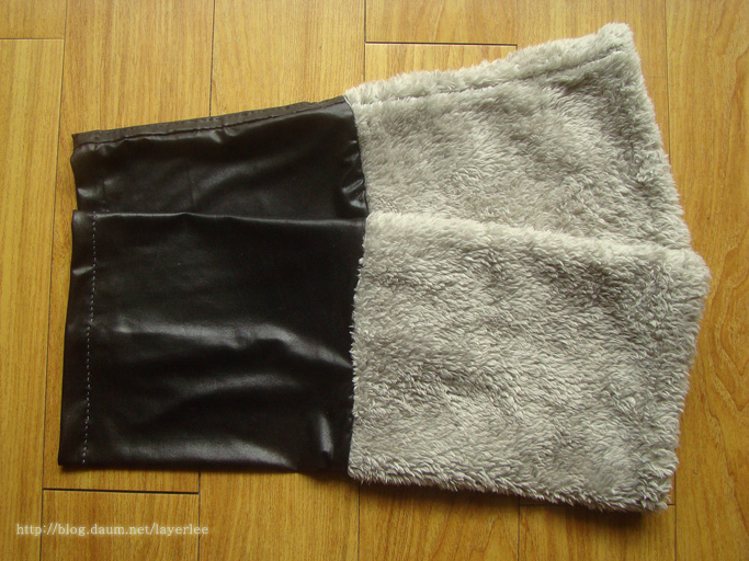사용재료는 패션스타트에서 구입한 스판 레자와 사은품으로 받은 저지(추정) 원단 그리고 실토리에서 구입한 회색 양면 퍼 원단과 베이지색 단면 퍼 원단입니다.