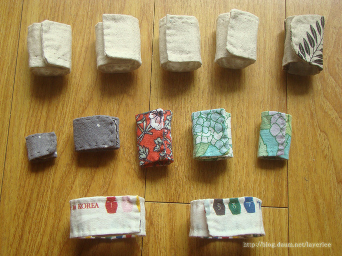 작은 케이블 타이가 필요해서 자투리 천을 뒤지던 것이 요근래의 소일거리가 되어 여러 개를 만들었어요.