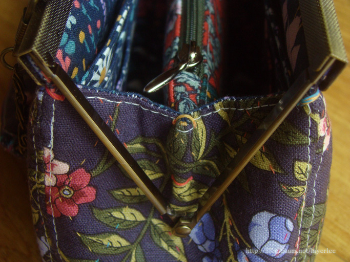 사용재료는 네스홈의 미스티 플럼 린넨과 채송화 린넨, 페이퍼 컷팅 면 원단, 패션스타트의 20센티 일자 프레임과 12.5센티 앤틱 지퍼 다크 브라운색, 39센티 앤틱 체인 스트랩, 흰색 실크심지 그리고 코튼빌의 4.5온스 퀼팅 접착솜과 카키색 롤지퍼입니다.