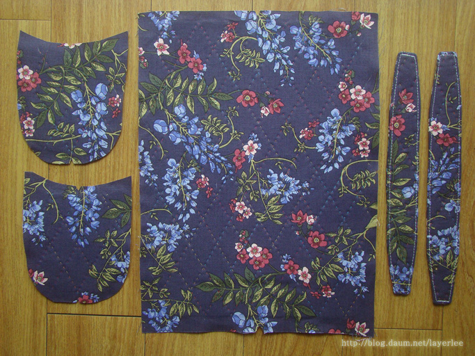 파츠의 퀼팅 후 사진이에요. 통으로 퀼팅한 스트랩 커버 역시 동시 작업을 했어요.
