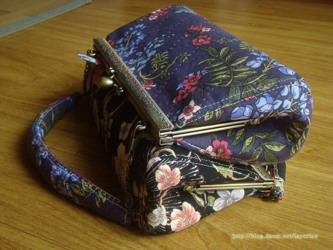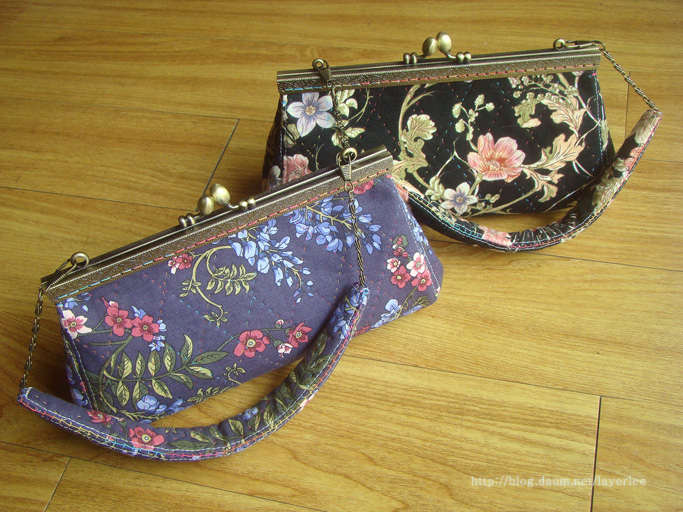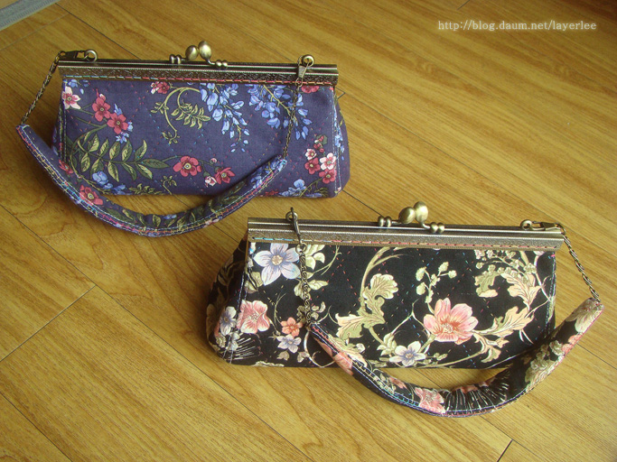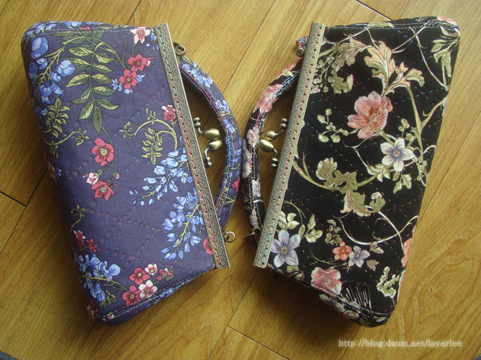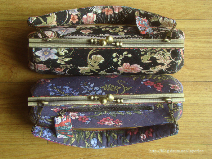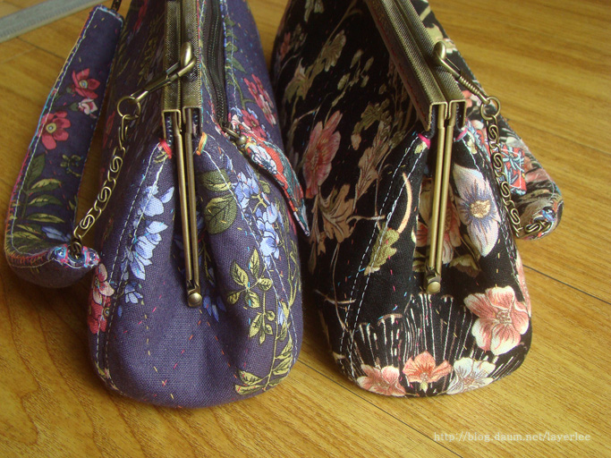 앞서 포스팅했던 일자 프레임 퀼팅 장지갑 파우치 둘을 함께 찍은 사진들이에요.
