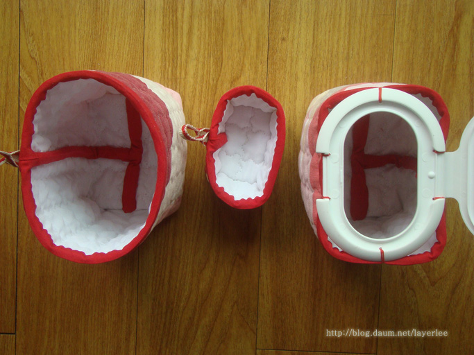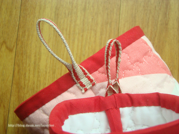 위에서 본 모습입니다. 가운데만 바닥을 따로 붙여서 겉에서 바이어스 처리했어요.