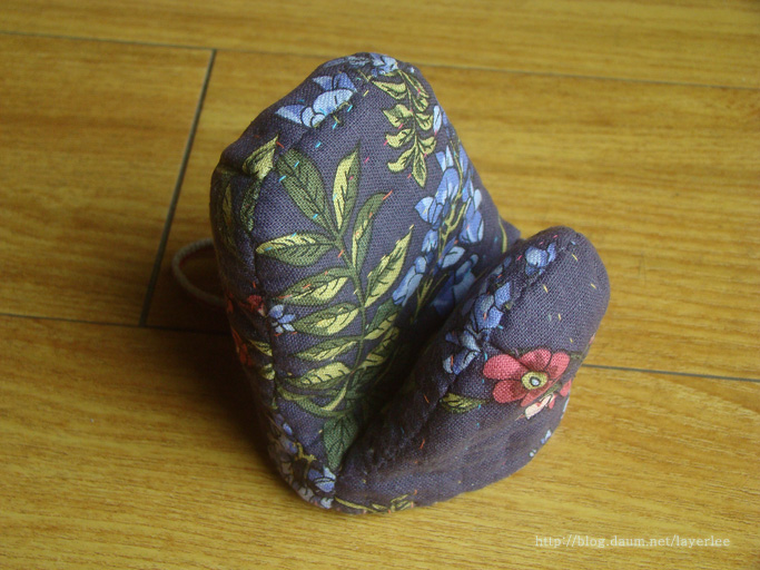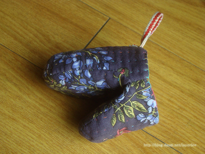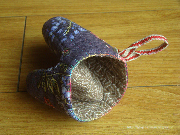 손잡이가 되는 면은 가로 퀼팅을, 손등과 엄지 쪽 바깥은 세로 퀼팅을 했어요.