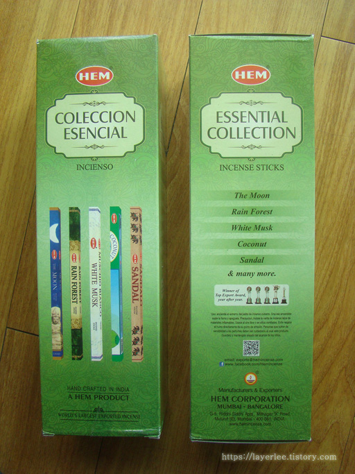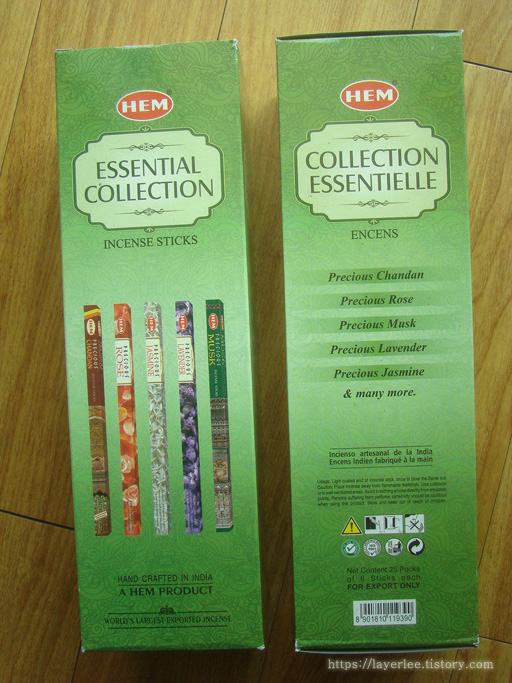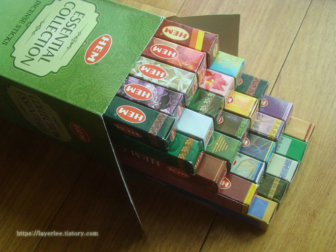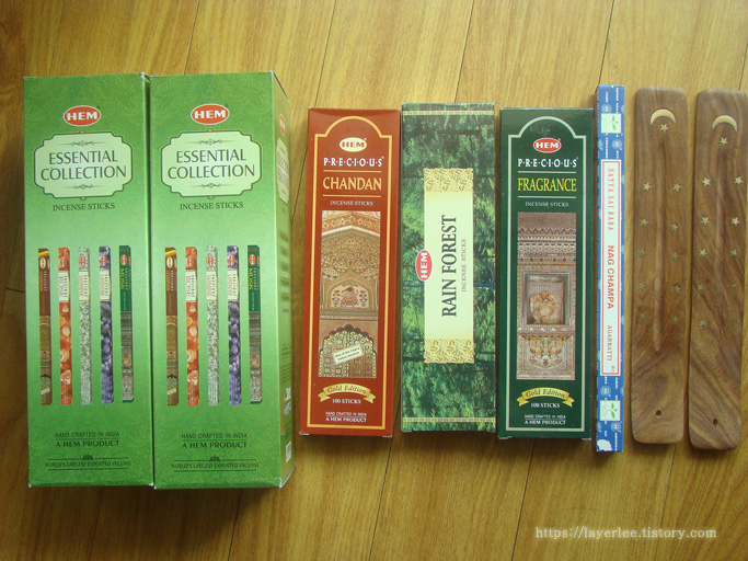 8개씩 든 25가지 향 세트인 에센셜 콜렉션을 1+1으로 구입하고 100개들이 향을 쟁이기용과 친구 것으로 3가지, 어떤 향인지 궁금해서 구입한 사티야 나그참파 10그람짜리 그리고 문 플레인 죽심향 홀더 2개를 구입했어요.