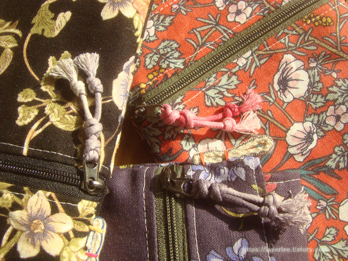 지퍼 고리에는 면끈으로 매듭을 달았습니다.