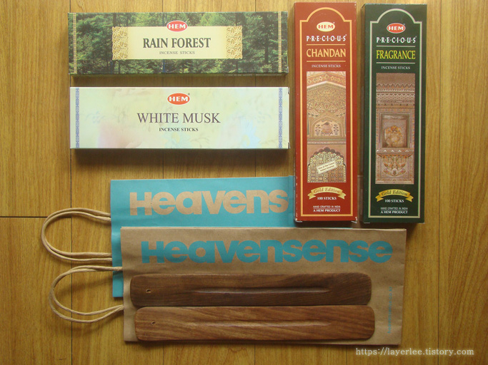 제 첫 인도향인 찬단, 여름에 피우기 좋은 레인 포레스트 그리고 온화해서 계절 관계없이 피우기 좋은 화이트 머스크와 프레그런스입니다.