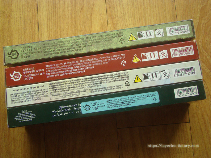 지난 번 구입한 프레그런스와 비교하니 옆면 인쇄가 바뀌었더라고요. 위가 이전 구입분입니다.