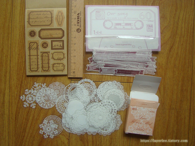 그리고 아래는 작은 레이스 도일리 스티커입니다. 총 45매인데 원래 중복이 없어야 하는데 3개가 중복이더라고요.