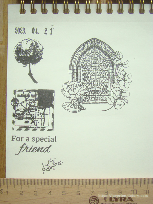 클리어 스탬프 2가지와 큼직한 창문 도안의 나무 스탬프를 구입했습니다.