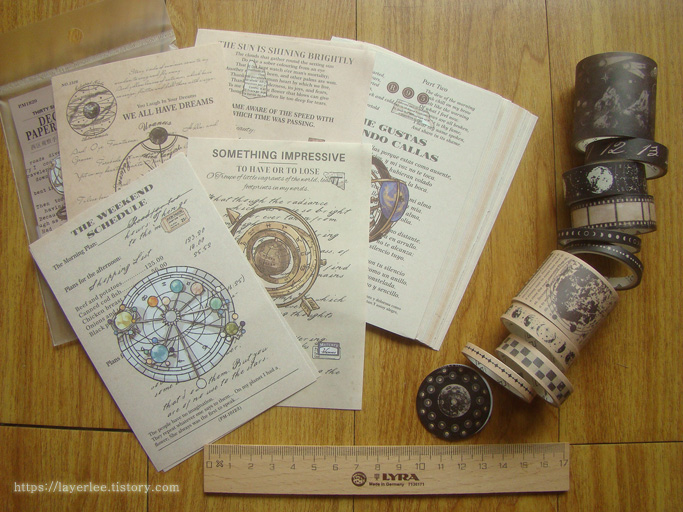이번에 구입한 것 중에 우주 관련 제품 두 가지입니다. 배경지와 마스킹테이프 세트입니다.