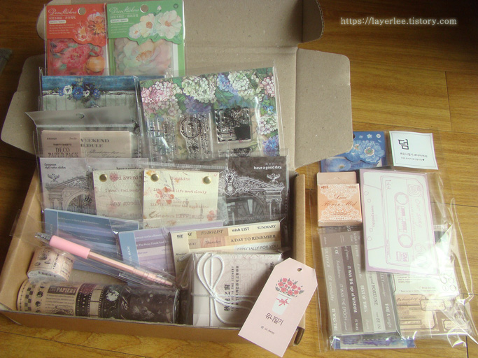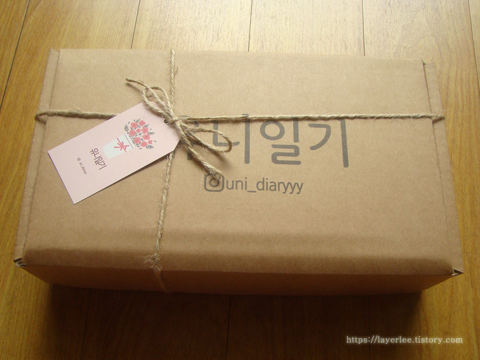 유니일기는 언제나 예쁜 상자에 담아 포장해 줍니다. 이 상자는 평소 다꾸템을 담아두는 데 활용하고 있어요.