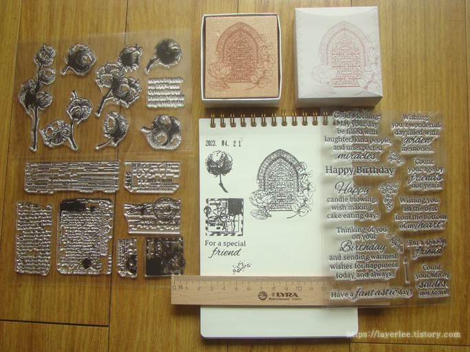 클리어 스탬프 2가지와 큼직한 창문 도안의 나무 스탬프를 구입했습니다.