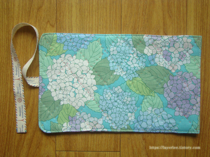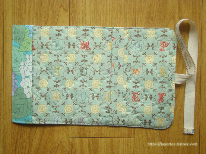 안감은 야생화 그림 면 원단으로 골랐어요. 이번에 작업한 것들은 통퀼팅한 것이 안감에서 잘 보여서 좋군요.
