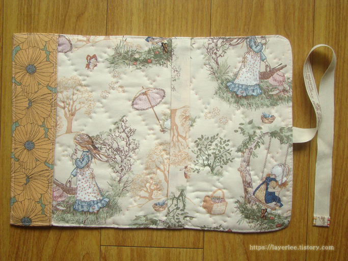 안감은 베이지 톤의 소녀 그림 면 원단을 골랐습니다. 이 소녀 그림 원단은 구입하고 처음 사용했어요.