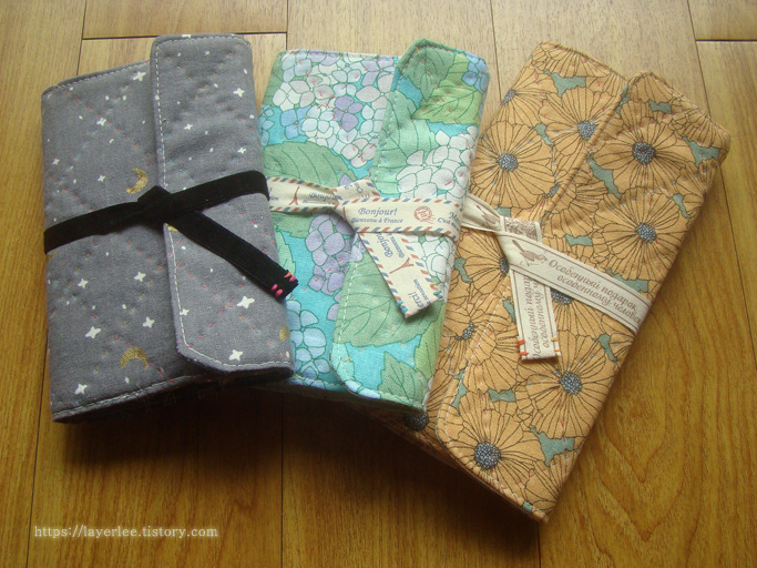 이번에는 미니 수첩 사이즈 두 개와 처음 만든 커버와 같은 사이즈까지 총 3개를 한 번에 작업했어요.