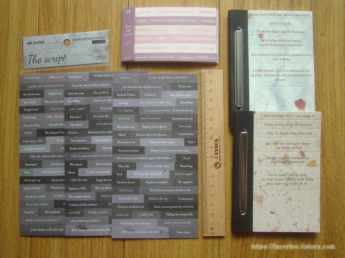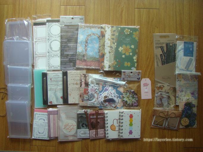 [사진多] 할인은 하울의 확연한...2탄입니다.소소한 일상/소소한 취미 2023. 5. 9. 18:32우려먹은 제목 그대로 할인을 하길래 또 다꾸(다이어리 꾸미기)템을 질렀습니다. 어린이날 하루 한정으로 유니일기에서 20% 할인을 하더라고요. 원래는 5월 2차 신상이 뜬 후에 주문을 결정하려고 했는데 할인 이벤트가 떴으니 어쩔 수 없잖아요. 장바구니에 담아두고 있던 신상도 있고 기다리던 물품의 재입고도 있길래 쟁여두면 좋은 기본 물품과 함께 주문을 했습니다. 주문폭주 때문에 배송이 늦을 수 있다고 했지만 어제 발송해서 오늘 점심 때 잘 도착했습니다. 택배 박스가 찌그러지고 찢어져서 왔지만 유니일기의 포장을 믿고 있어서 걱정 없이 풀었습니다. 역시나 멀쩡한 내부의 유니일기 박스와 중 사이즈 플라스틱 케이스를 담은 에어캡이에요.  꺼내서 박스에 담아보았습니다. 앞에는 플라스틱 케이스 소와 중 사이즈이고 옆에는 덤이에요. 할인 이벤트여서 덤은 크게 기대하지 않았는데 신상품이 덤으로 왔어요.  구매한 전체를 늘어놓은 사진입니다. 유니일기 태그 기준으로 왼쪽이 주문품, 오른쪽이 덤이에요.  사실 카메라 배터리가 간당간당해서 급히 찍다가 중간에 충전을 하는 동안 커피를 마시고 다시 찍느라 덤 사진을 안 찍은 걸 사진 편집하다가 알았어요. 그래서 덤만 나중에 따로 찍었습니다. 왼쪽의 PET와 검정색 타이포 폰트의 레터링만 3월 신상이고 나머지 5종이 모두 5월 신상이에요. 나비와 새가 있는 태그, 메모장 디자인의 미니 다이어리, 아래의 청보라색의 꽃이 스티커입니다. 태그와 라벨이 두 가지 재질의 종이에 각각 인쇄된 제품이 있는데 하나는 찢기고 하나는 행방불명되었지만 덤이니까 괜찮아요. 오히려 덤 레터링에 몇 개 더 들어 있었거든요. 그림을 그래픽 처리해서 흐릿하게 만든 듯한 패턴의 8종 40매 떡매 배경지도 있습니다.  이제부터 주문한 제품들입니다. 지난 번 주문한 양면 배경지의 다른 옵션을 구입했어요. 위가 지난 번 구입한 것이고 아래가 이번 구입품입니다.  요즘 구입하는 아이템의 주제는 우주와 재봉 두 가지입니다. 가끔 꽃도 있지만요. 어쨌든 그 두 가지 주제의 얇은 트레이싱지 스티커입니다. 포장의 스웨이드 끈은 빼놓았어요. 테두리에 물든 듯한 색이 있는 패턴과 흰색으로 인쇄된 패턴으로 동일 그림이 하나씩 구성되어 있습니다.  4월 1차 신상으로 뜬 그 날 품절되어 기다렸던 재봉 관련 물품 스티커가 한 달만에 재입고 되었어요. 단추와 보빈 그리고 좌우 반전된 꽃을 제외하고는 같은 그림이 없는 구성이에요.  동그란 프레임이 가지고 싶어 뒤지다 찾은 제품이에요. 2단에서 4단까지 떼어서 쓸 수 있는 5센티 가량의 원형과 작은 원형 그리고 기다란 라벨이 구성되어 있습니다. 디자인별 3장씩이에요.  예전에 산타월드에서 구입했던 꽃배경지에 등장하는 그림과 같은 꽃이 등장하는 스티커입니다. 여러 크기의 보라색 나비와 꽃과 나비가 함께 있는 작은 꽃 그림 그리고 여러 보라색 계열 꽃 구성이에요. 개수도 많고 후백 인쇄된 PET 스티커인데 가격이 괜찮아서 하나 사봤어요.  레터링 제품들을 모았습니다. 전에 덤으로 받았던 스티커와 다른 옵션으로 다양한 회색 바탕의 레터링 스티커를 구매했어요. 지난 번에 구매하고 글자 크기가 커서 마음에 들었던 스티커도 분홍색으로 구매하고요. 꽃한지 느낌의 패턴지에 적힌 레터링도 새로운 게 나와서 두 가지 구매했습니다. 전에 구입한 것은 매수가 적고 바탕지 패턴과 레터링의 반복이 없으며 올록볼록한 질감이 있는 두꺼운 종이였어요. 이번 것은 매수가 늘어난 대신 기본 바탕지 색이 동일하고 그 바탕지의 꽃한지 패턴과 레터링도 5장씩 동일하게 반복되고 얇은 종이가 되었습니다. 서로 장단점이 있을 거예요. 다양성은 이전 것이 좋고 떼어 쓰기엔 이번 것이 편합니다.  프레임 메모지들입니다. 세 개씩 구성된 30매인데 종이가 얇은 대신 앞뒤의 표지가 따고 있어요. 이번에도 역시 둥근 프레임 중 하나와 취향을 따른 패턴 하나로 골랐어요.  3중의 이지컷팅 프레임 메모지입니다. 이것도 30매입니다.  내부 이지컷팅 프레임의 특성상 얇은 종이의 경우 깔끔하게 뜯기 힘들어서 그런지 종이 두께 차이가 확연합니다. 두 제품 모두 각각 30매이지만 앞뒤표지까지 있는 둘을 합쳐도 비슷한 두께더라고요.  이전에는 한 번도 산 적 없는, 덤으로 어쩌다 몇 개 끼어오던 인물 스티커를 구입했습니다. 수채화풍의 예쁜 그림인데 뭔가 몽환적이고 판타지스러운 면이 있어서 관심을 두고 있었어요. 한동안 품절이었다가 이번에 재입고가 되었길래 냉큼 사봤습니다. 총 52매입니다.  그리고 쟁여두면 좋은 기본 아이템들을 샀어요. 잘 사용하고 있는 휴대용 노트를 옵션별로 하나씩 그리고 작은 수첩도 두 개 샀습니다.  플라스틱 케이스 소와 중 사이즈를 3개, 2개씩 구입하고 마테 감개를 10개 그리고 언제나 유니일기에서 주문할 때마다 하나씩 쟁이는 펜칼도 샀어요. 이번엔 흰색이 왔네요. 마테감개는 주문할 때는 분홍색이 품절이었는데 파란색보다 연두색이 눈금이 눈에 잘 띄어서 이 색으로 골랐어요.  두 케이스의 크기 비