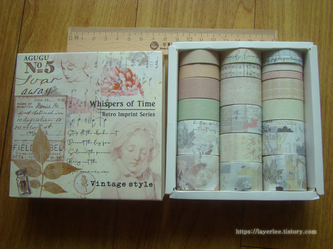 20개들이 마스킹테이프입니다. 5, 10, 15, 20, 25미리 사이즈가 각각 4개씩이고 길이는 아마도 2미터일 거예요.