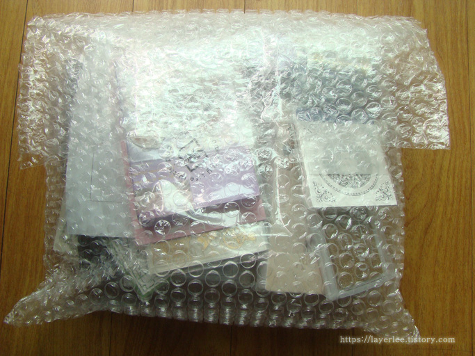 포장을 풀고 주문품과 덤을 정리했어요. 왼쪽이 주문한 물품이고 오른쪽이 덤입니다.