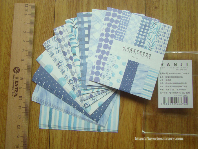 왼쪽 둘은 3가지 종이에 10매씩 총 30매이고 오른쪽은 두 가지 디자인 25매씩 총 50매입니다.