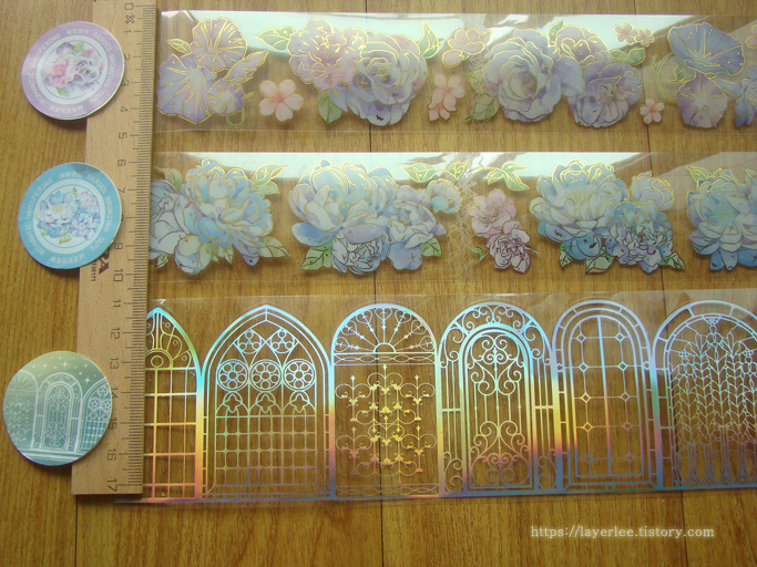 창문 마테는 2미터 길이 홀로그램박으로 위쪽만 절취선이 되어 있어서 창 사이는 직접 잘라줘야 합니다.