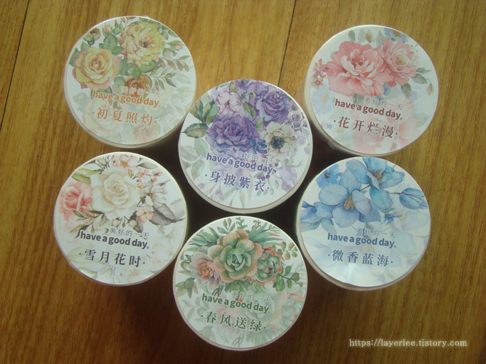 폭 6.5센티 길이 2미터의 화지 꽃 마테를 옵션 전체를 주문했어요. 이건 그림이 예뻐서 무조건 다 가지고 싶었어요.