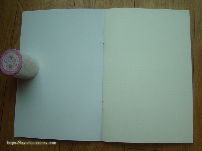 A5 사이즈 노트입니다. 재고가 점과 실선 내지 두 가지 뿐이라 점으로 주문했어요.