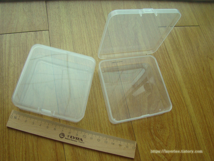 정사각형의 미니 플라스틱 케이스입니다. 크기가 작은 물품이나 스티커를 담을 용도로 구매했어요.