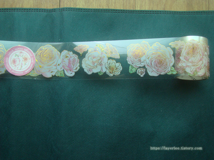 이전 스티커랜드 구매할 때 파란색과 보라색을 샀던 금박이 있는 꽃 패턴 마스킹테이프의 분홍색을 구매했어요.
