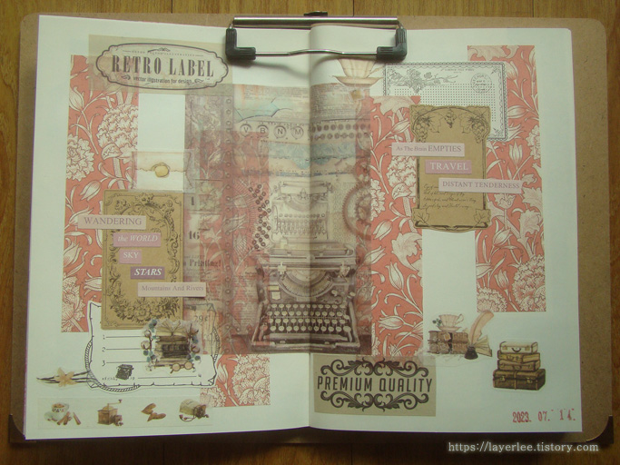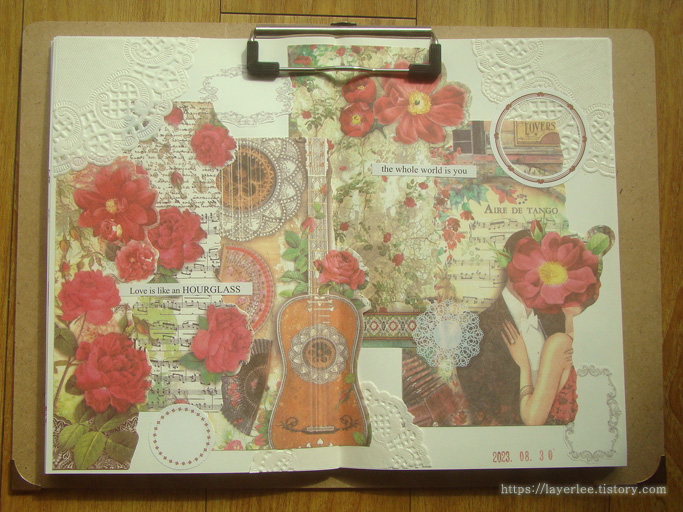 찢은 배경지를 배치하는 것도 여러 모로 궁리를 하다 보면 재밌는 구성이 나오곤 해요.