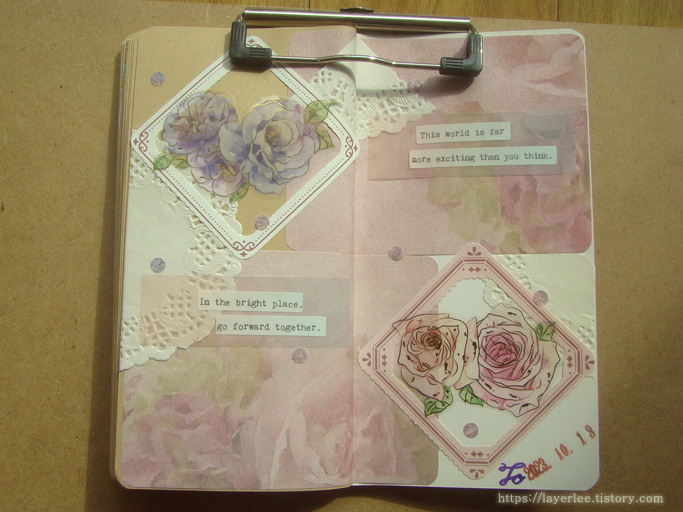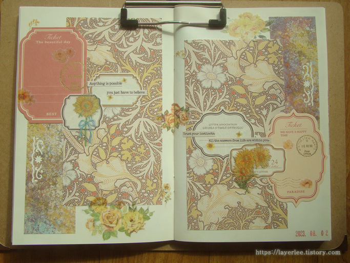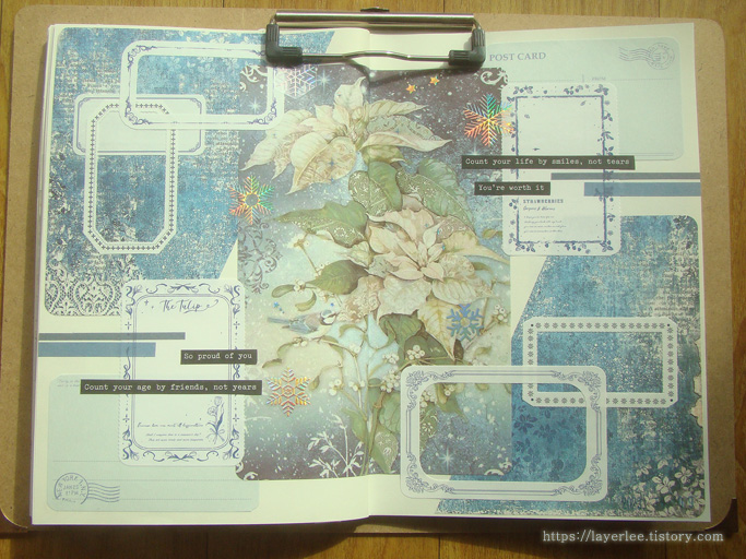 양면 배경지가 실제본이어서 노트로 사용할지 뜯을지 고민했는데 결국 제본을 뜯어서 배경으로 썼어요.