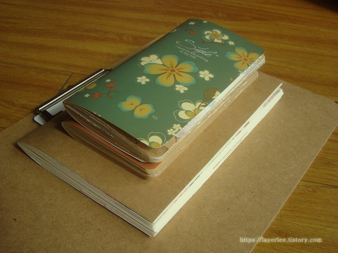 똑같이 A5 노트 한 권과 휴대용 노트 두 권이에요. 휴대용 노트는 4가지 표지가 있는데 하나씩 다 사용했어요.