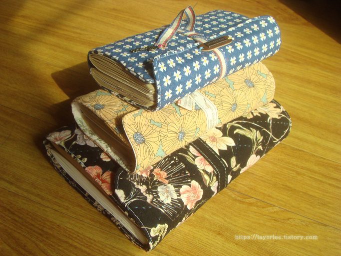 사용한 노트는 많이 두꺼워져서 커버에 두 권씩 끼웠더니 이전에 만든 퀼팅 커버 3개가 꽉 찼어요.