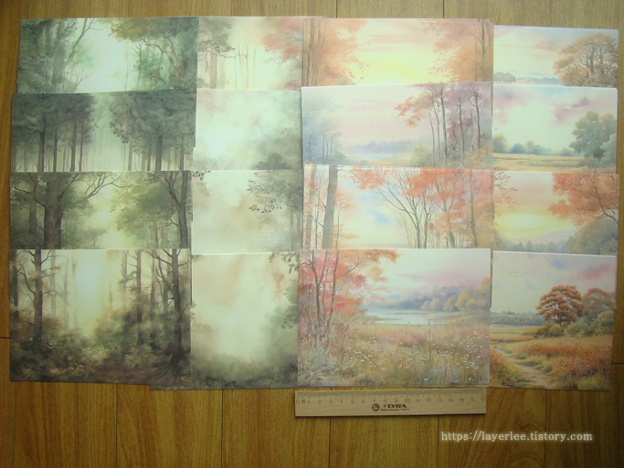 역시나 AI 그림으로 추정하고 있는 입체 그림 배경지입니다. 10디자인 4매씩 총 40매입니다.