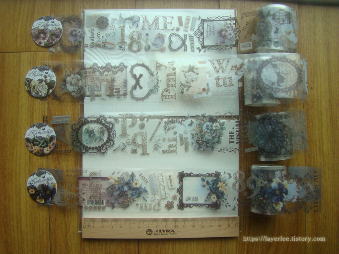 이번에는 배경지와 메모지, 스티커와 마스킹테이프까지 다양하게 주문했어요.