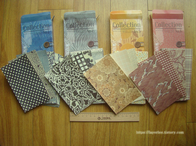 일반적인 10 X 14 센티 사이즈의 50 디자인 2매씩 총 100매의 배경지입니다.