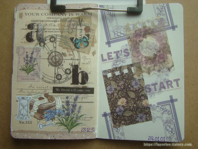 12월 31일 연말과 1월 1일 연초 다꾸입니다. 둘 다 보라색을 포인트와 주제색으로 사용했어요.