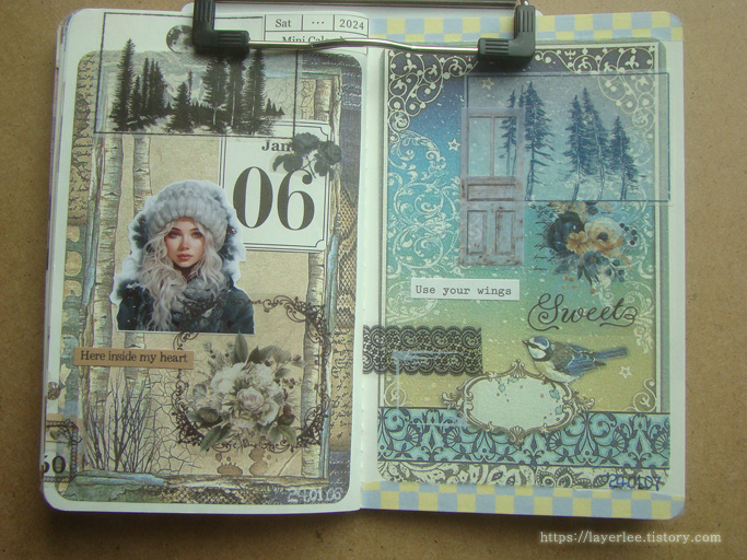 마지막 페이지 다꾸여서 표지 안쪽까지 꾸며봤습니다.
