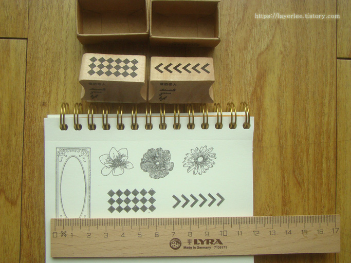 프레임 나무 스탬프는 고민고민해서 이 옵션으로 골랐고 체스판 무늬와 화살 무늬는 전부터 갖고 싶던 거예요.