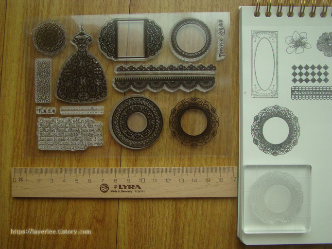 클리어 스탬프도 찍어봤습니다. 가는 선으로 된 도일리를 찍었어요. 역시 예쁘게 잘 찍힙니다.